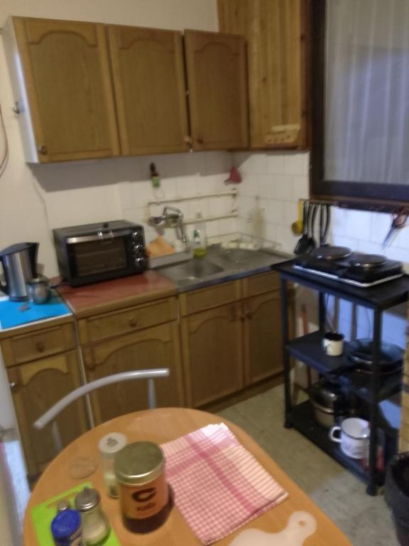 frižider, električno kuvalo, posuđe, sto za ručavanje